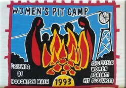 Scope and ContentPoster of the Women's Pit Camp Banner 1993 showing women round a fire and the text Friends of Houghton Main and Sheffield Women Against Pit Closures