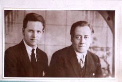 Scope and ContentBlack and white photograph of Jim Gardner and Tom Bell with the inscription: 'To John from Jim' on the back.  Also in frame was a Christmas card To Bessie and Jim from Frank and Dolly