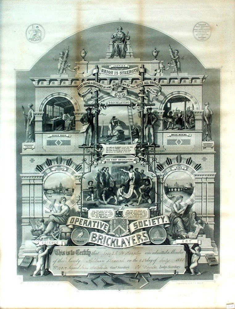 TitleOperative Bricklayers' Society membership certificate, 1890