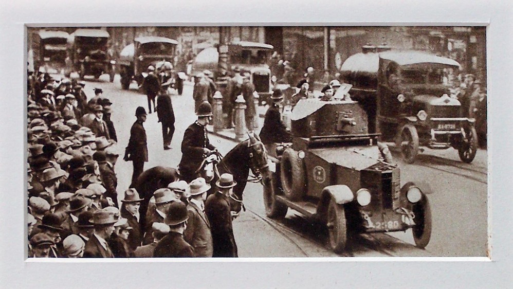 Scope and ContentPhotograph of an armoured car driving down a street in London. There is crowd of people, policemen and procession of other cars nearby.