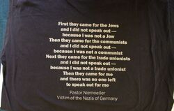 Scope and ContentBlack with white lettering. On back - Poem by Pastor Niemoeller, 'Victim of the Nazis of Germany'