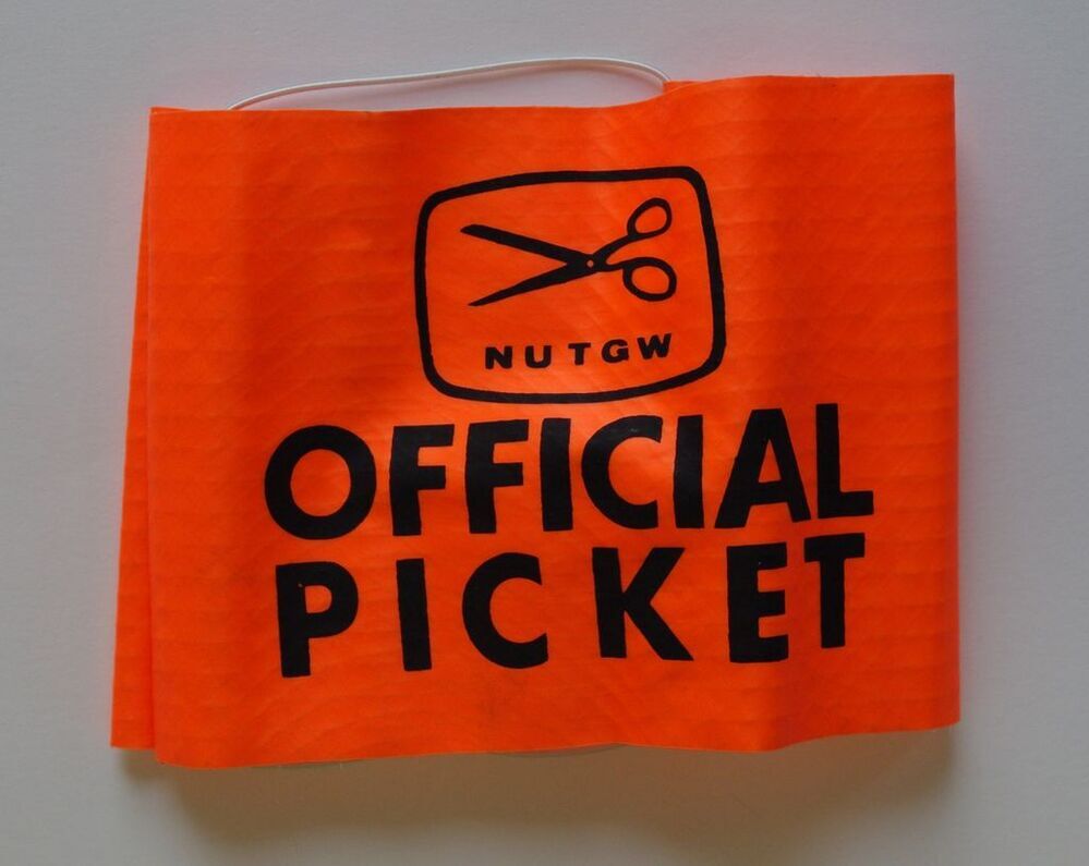 Scope and ContentOrange plastic black lettering "NUTGW. Official picket" with NUTGW logo