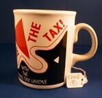 Scope and ContentLondon says axe the Tax mug. Wrap around illustration showing building and road with triangles. Text - 'London says axe the Tax. No Poll Tax. No cuts. With the Anti-Poll-Tax Unions'.