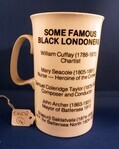 Scope and ContentLondon Against Racism mug. Front - Illustration of London skyline. Below text - 'London Against Racism'. Back - text - Some famous Black Londoners. William Cuffay (1788-1870) Chartist. Mary Seacole (1805-1881) Nurse - heroine of the Crimea. Samuel Coleridge Taylor (1875-1912) Composer and Conductor. John Archer (1863-1931) Mayor of Battersea. Shapurji Saklatvala (1874-1936) MP for Battersea North 1924-1929