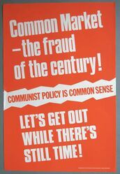 Scope and ContentPoster with the text: Common Market - the fraud of the century! Communist policy is common sense. Let's get out while there's still time! Published by the Communist Party.
