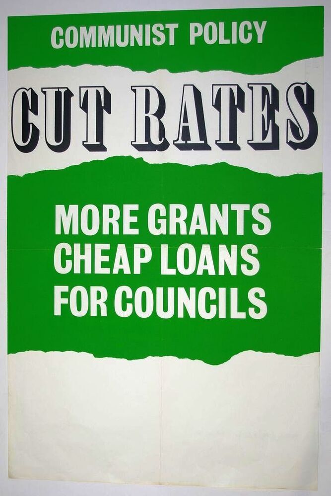 Scope and ContentPoster with the text: Communist policy - cut rates, more grants, cheap loans for councils