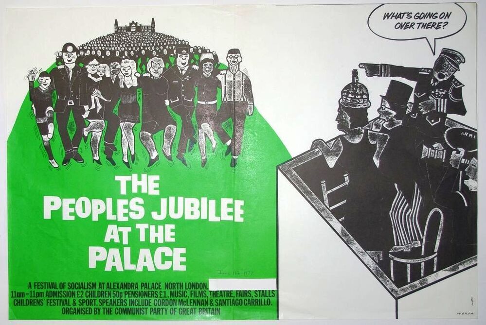 Scope and ContentPoster advertising an event The peoples jubilee at the palace. A festival of Socialism at Alexandra Palace, North London on 19 Jun 1977. Organised by the Communist party of Great Britain.