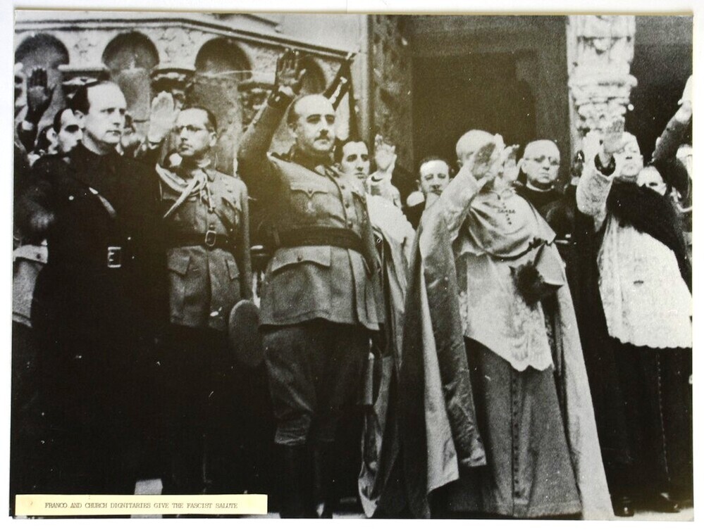 Spanish Civil War: Franco and church dignitaries give the fascist salute