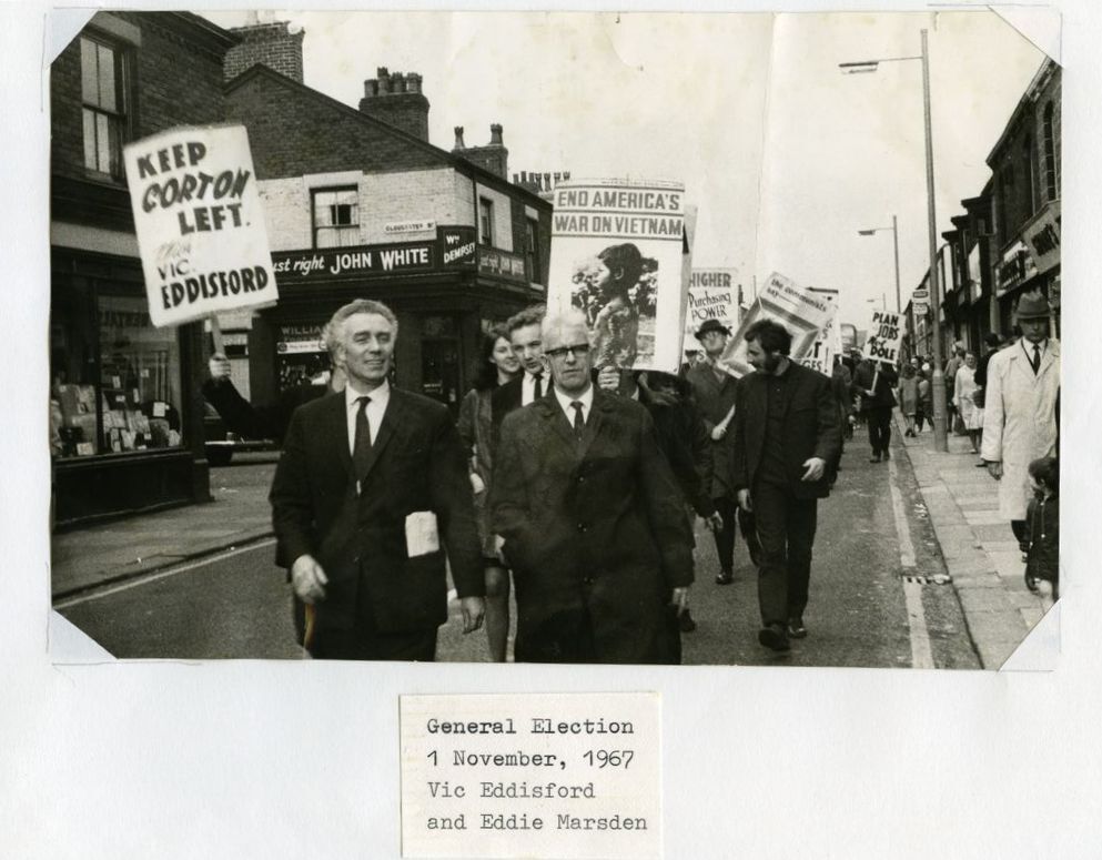 Scope and ContentPhotograph of Vic Eddisford and Eddie Marsden at a demonstration