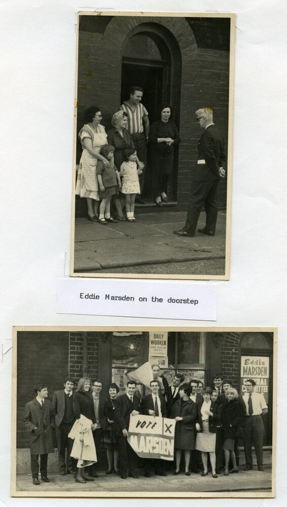 Scrapbook 8: Images - Eddie Marsden canvassing, and a group of supporters