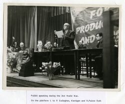 Scope and ContentPhotograph of Harry Pollitt speaking, with Willie Gallacher, Peter Kerrigan and Rajani Palme Dutt on the platform