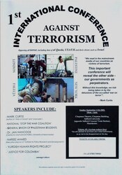 Scope and ContentPoster advertising the 1st international conference against terrorism to take place at Chapman Theatre, Salford University on 11 Sep 2005