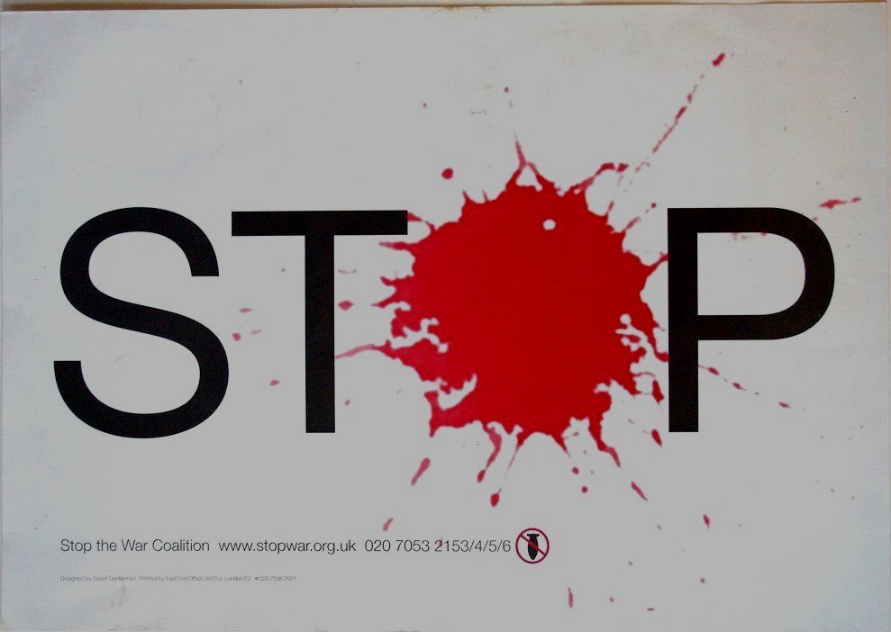 Scope and ContentPoster with the text Stop. [The O of stop is a blood spot]