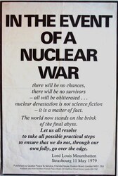 Scope and ContentPoster with thet text: In the event of nuclear war there will be no chances, there will be no survivors - all will be obliterated ... nuclear devastation is not science fiction - it is a matter of fact. The world now stands on the brink of the final abyss. Let us all resolve to take all possible practical steps to ensure that we do not, through our own folly, go over the edge. Lord Louis Mountbatten, Strasbourg 1 May 1979.