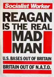 Scope and ContentPoster with the text: Socialist Worker. Reagan is the real mad man. US bases out of Britain. Britain out of NATO.