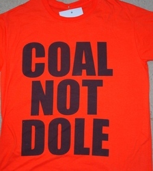 Scope and ContentBright orange with black lettering "Coal not Dole"