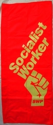 Scope and ContentBright red flag with "Socialist Worker" in yellow lettering, with an image of a fist with SWP on the wrist