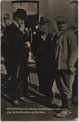 Scope and ContentBlack and white postcard showing Keir Hardie and two other men with the caption "Welsh Pit Disaster. Mr. Keir Hardie talking with one of the Directors of the Mine." Has text on back, addressed to Miss Hardie in Cumnock.