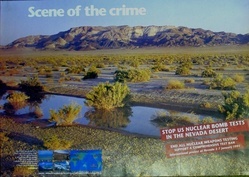 Scope and ContentPoster with a photograph of the Nevada desert and the text: Scene of the crime. Stop US nuclear tests in the Nevada desert. End all nuclear weapons testing. Support a comprehensive test ban. International protest at Nevada, 3-7 January 1991. With an inset showing where various countries test their nuclear weapons