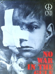 Scope and ContentPoster with an image a boy with an bandage over half his face and the text: CND. No war in the Gulf