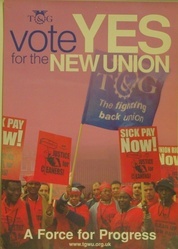 Scope and ContentPoster with a photograph of protesting cleaners and the text: Vote yes for the new union - a force for progress