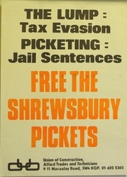 Scope and ContentPoster with the text: The lump = tax evasion. Picketing = jail sentences. Free the Shrewsbury Pickets