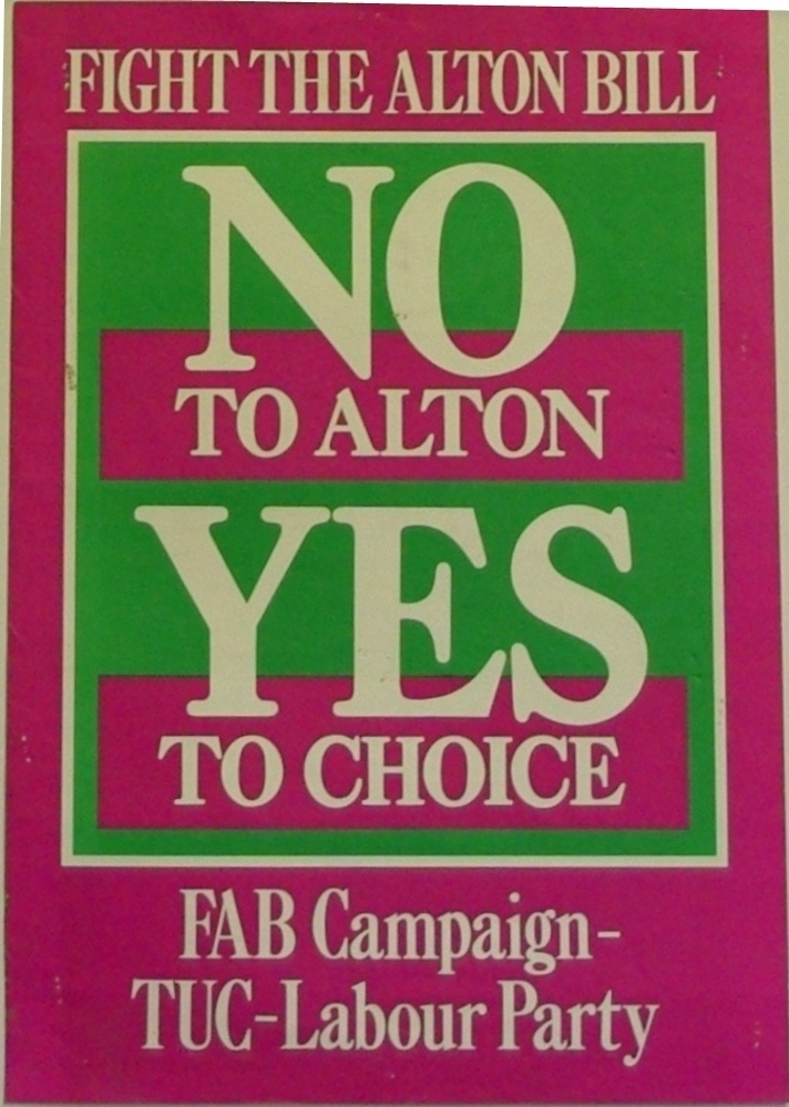 Scope and ContentPoster with the text: Fight the Alton Bill. No to Alton. Yes to choice. FAB campaign - TUC - Labour Party.