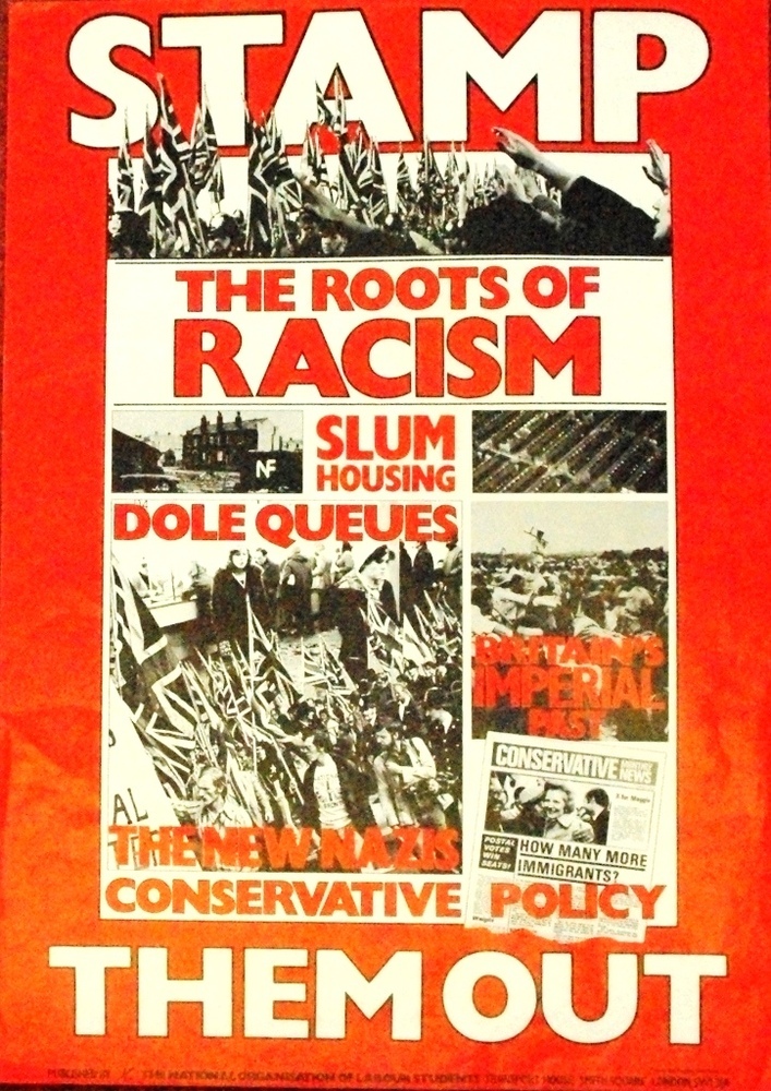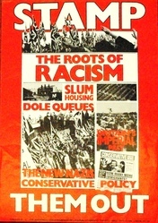 Scope and ContentPoster with various images of racism and the text: Stamp them out. The roots of racism. Slum housing. Dole queues, Britain's imperial past. The new Nazis. Conservative policy