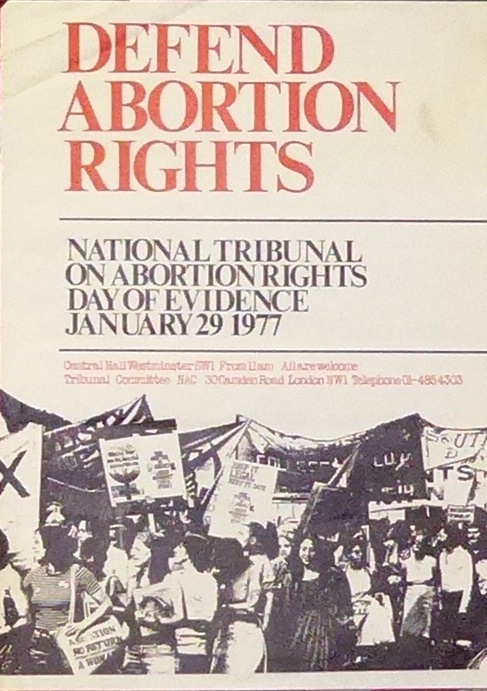 Scope and ContentPoster with an image of a demonstration and the text: Defend abortion rights. National Tribunal on Abortion Rights day of evidence, January 29 1977. Central Hall, Westminster, SW1 From 11am. All are welecome