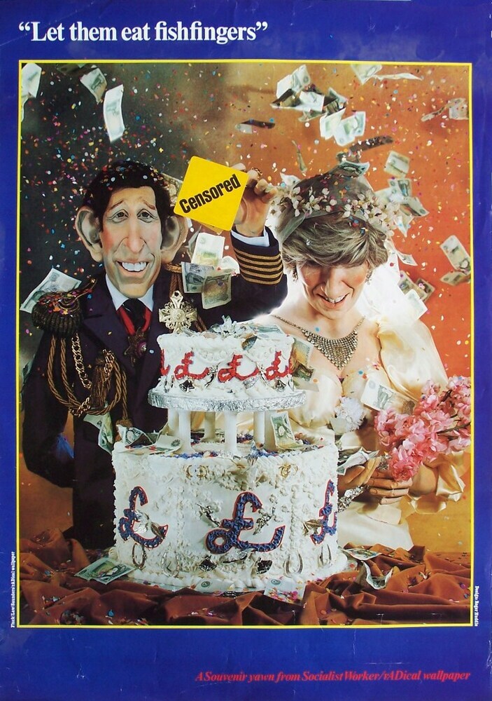 Scope and ContentPoster with a photograph of an illustration of a Spitting Image Charles and Diana wedding and the text: Let them eat fishfingers