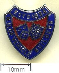 Scope and ContentEnamel badge with images of two coats of arms and the text: NU of Vehicle Builders. Est 1834.