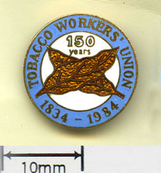 Scope and ContentBlue, White, Brown, Gold. Text - Tobacco Workers Union 150 years 1834-1984. Illustration - 2 tobacco leaves.
