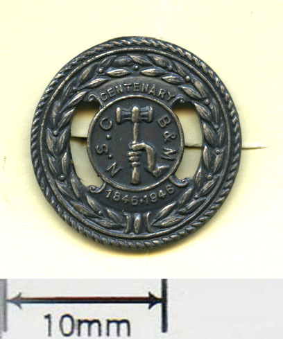 Scope and ContentBase metal. Text - NSCB&M Centenary 1846-1946. Illustration - hand holding metalwork hammer.