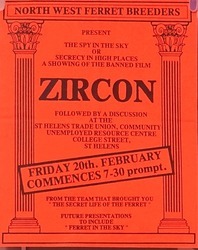 Scope and ContentNorth West Ferret Breeders present The spy in the sky or Secrecy in high places. A showing of the banned film Zircon. Followed by a discussion at the St Helens Trade Union, Community Unemployed Resource Centre, 20 Feb [1987]
