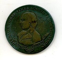 Scope and ContentMedal commemorating Daniel Isaac Eaton. Front: Side portrait of Eaton, with the text 'DI Eaton, three times aquitted of sedition'.  Reverse: Image pigs at a trough overlooked by a cockerel, with the text 'Printer to the majesty of the people. London'