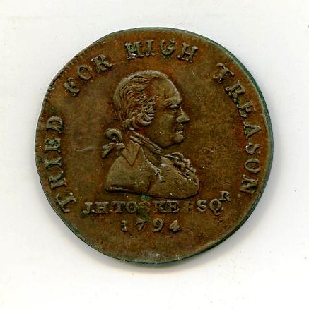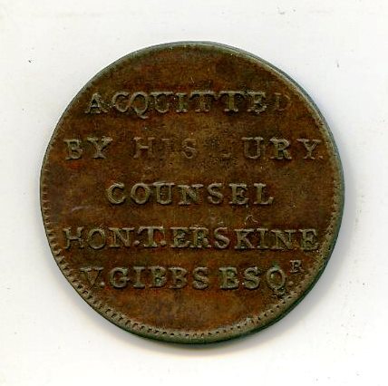 Scope and ContentMedal commemorating the aquittal of Thomas Hardy for high treason. Front: Portrait of Thomas Hardy with the text 'T. Hardy 1794. Tried for High Treason'. Reverse: ‘Acquitted by his jury’ and ‘Council Hon. T Erskine, V Gibbs Esq’.