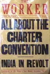 Scope and ContentThe Worker headline hoarding with the text: All about the Charter Convention. India in revolt
