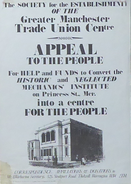 Scope and ContentAppeal to help restore the Mechanics' Institute, Princess Street, Manchester and convert it to a Greater Manchester Trade Union Centre