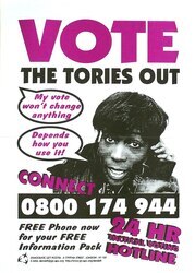 Scope and ContentPoster with an image of a man on the telephone and the text: Vote the Tories out. My vote won't change anything. Depends on how you use it!