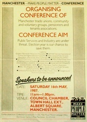 Scope and ContentPoster advertising a Manchester Make People Matter conference to be held on 16 May 1987. with details of conference aim and organisations involved