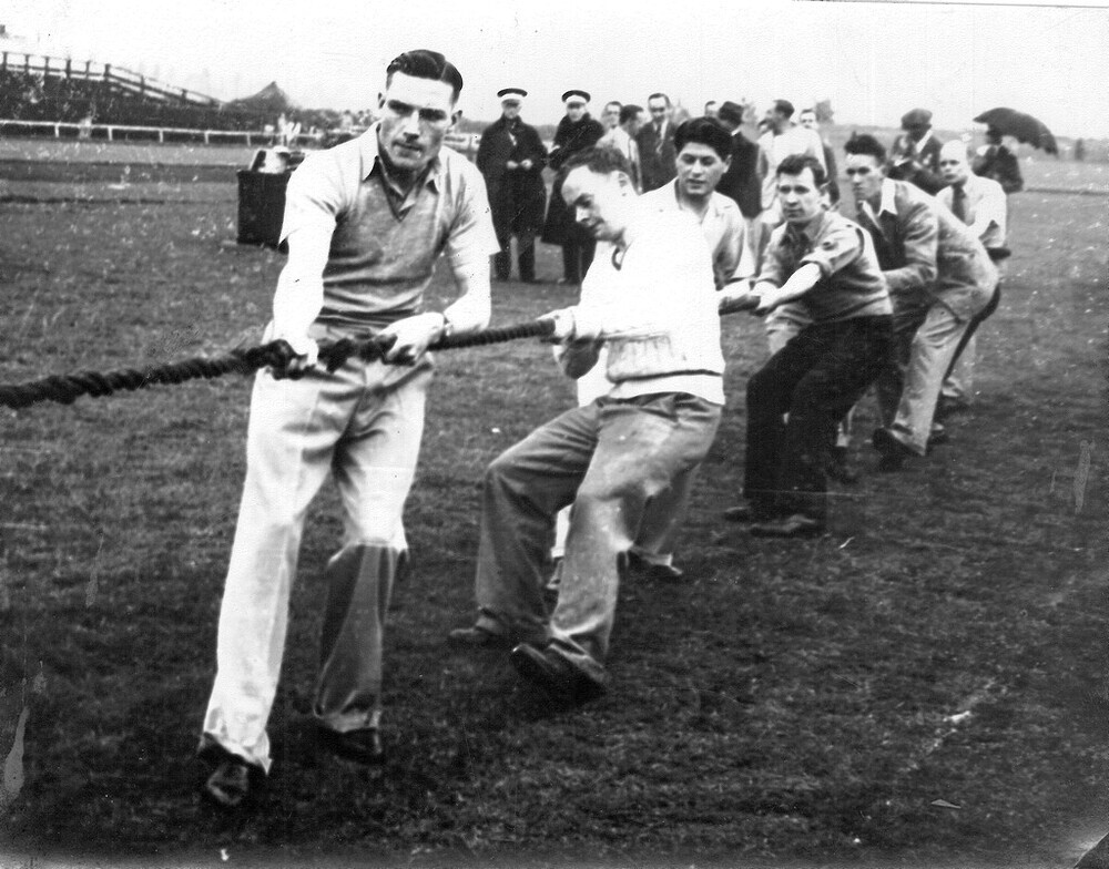 Scope and ContentBlack and white photograph of a tug of war team taken at the Centenary pageant and sports gala held at the Manchester Athletic Club, Fallowfield, Manchester