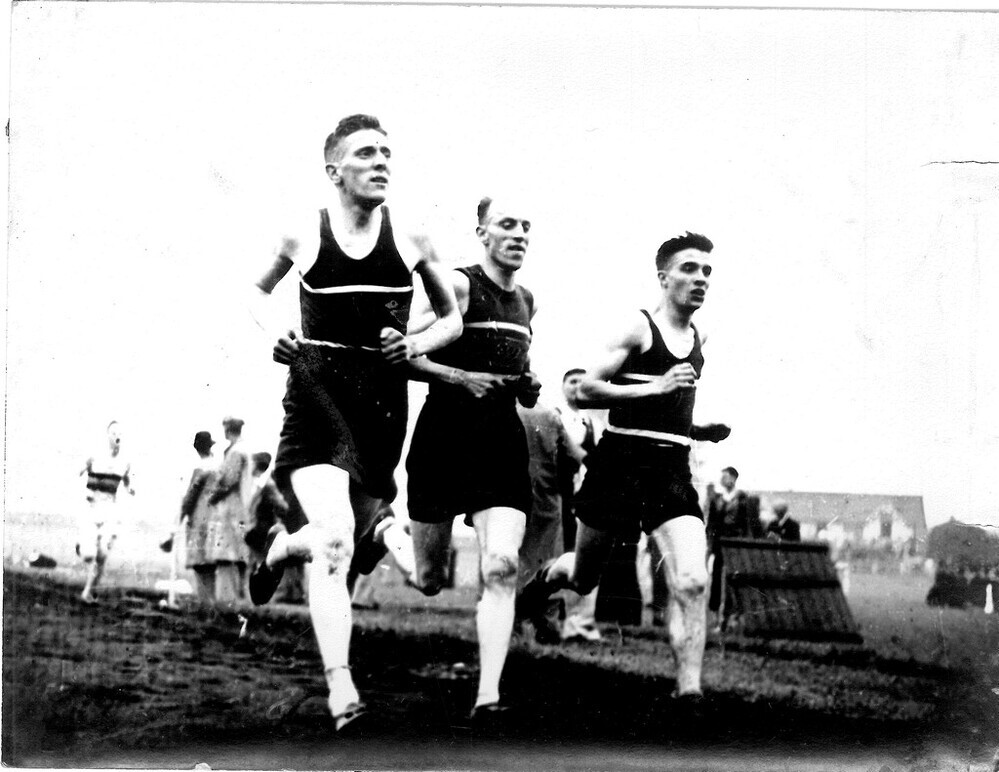Scope and ContentBlack and white photograph of three men runners taken at the Centenary pageant and sports gala held at the Manchester Athletic Club, Fallowfield, Manchester