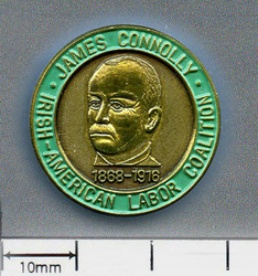 Scope and ContentEnamel badge with an image of James Connolly and the text: James Connolly, 1868-1916. Irish-American Labor Coalition