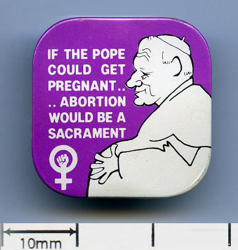 Scope and ContentTin badge with an image of a Pope and the text: If the Pope could get pregnant ... Abortion would be a sacrament