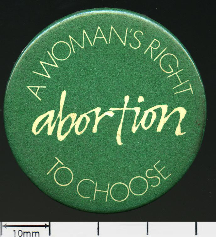 Scope and ContentTin badge with the text: Abortion. A woman's right to choose