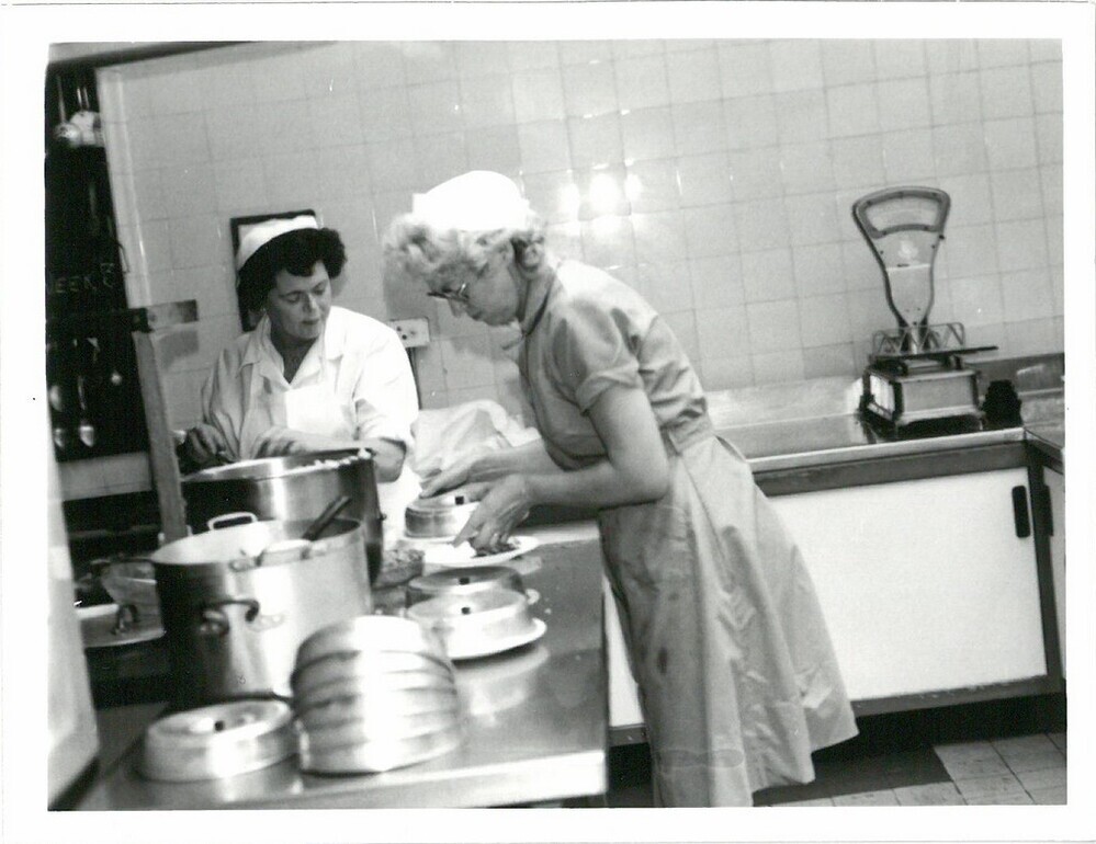 Scope and ContentBlack and white photograph of two catering workers in a kitchen plating meals
