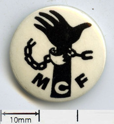 Scope and ContentTin badge with an image of a raised hand in a broken manacle and the text: MCF