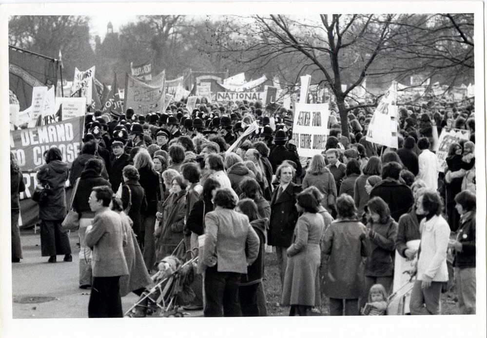 Scope and ContentBlack and white photograph of National Abortion Campaign supporters in Hyde Park