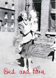 Scope and ContentBlack and white postcard advertising 'Bred and Born', a 75 minute film by Joanna Davis and Mary Pat Leece, about motherhood and class in Tower Hamlets, shown on Channel Four's 'Eleventh Hour'.