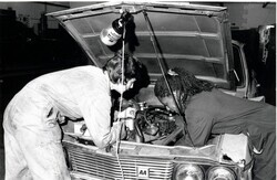 Scope and ContentBlack and white photograph of two women repairing a car's engine